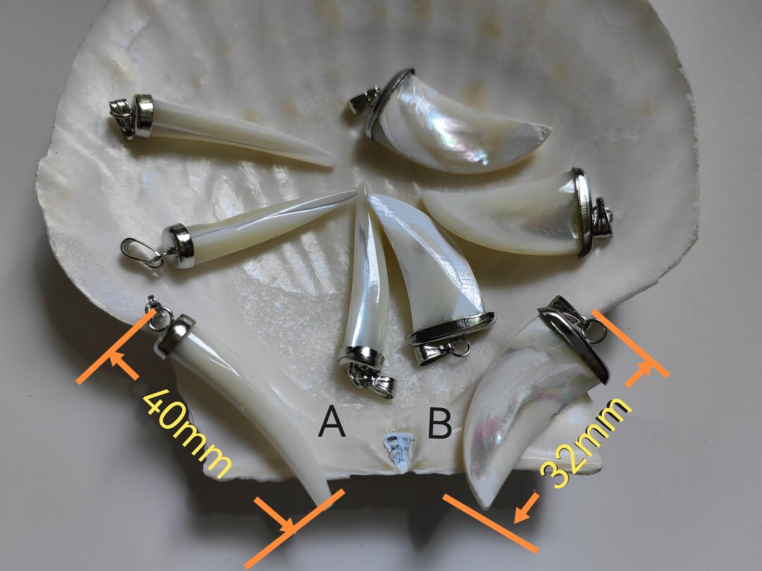 Mother of Pearl Tusk Pendant, MOP Shell Tooth Pendant, Shell Tooth ...