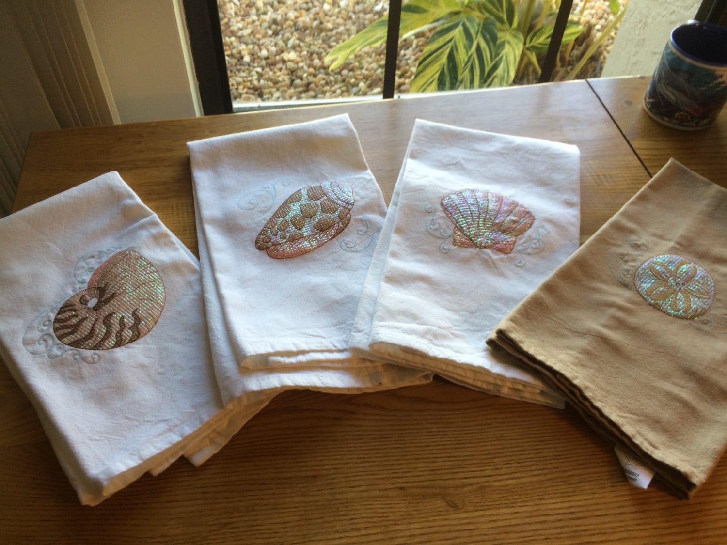 Embroidered Shell Kitchen Towels #0009 - Etsy