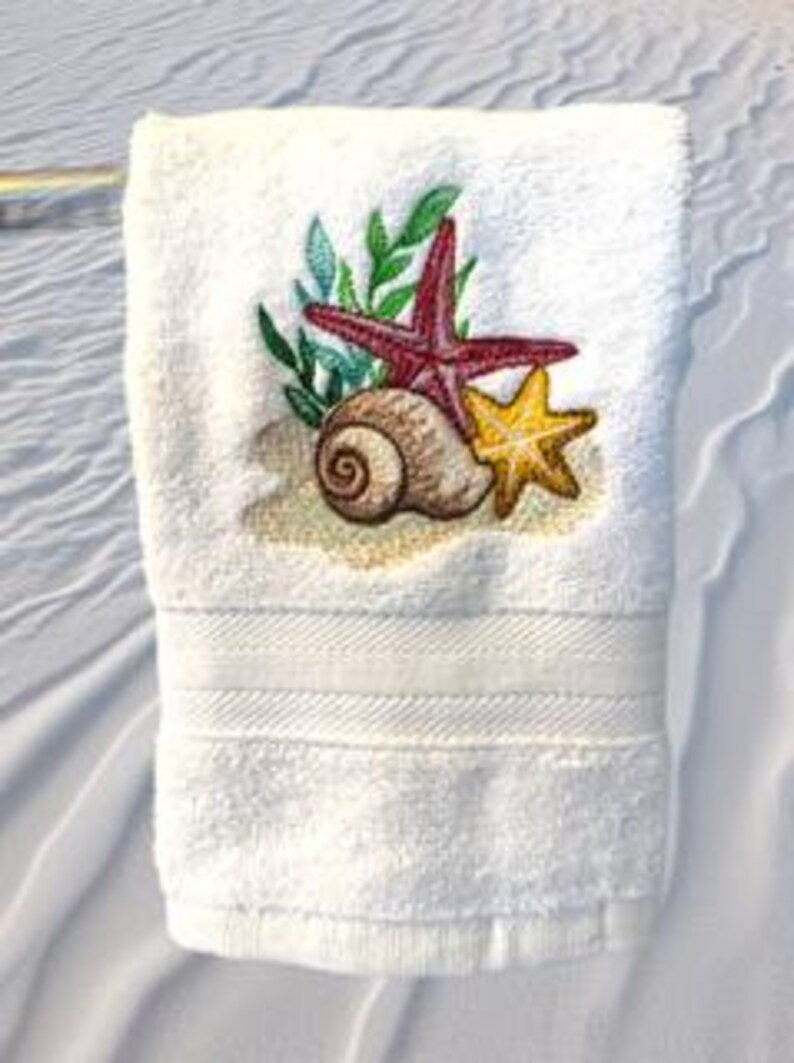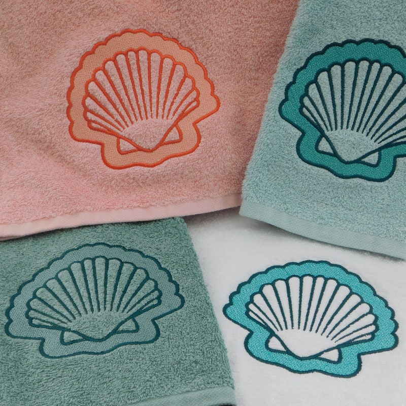 Embroidered Shell Towel - Etsy