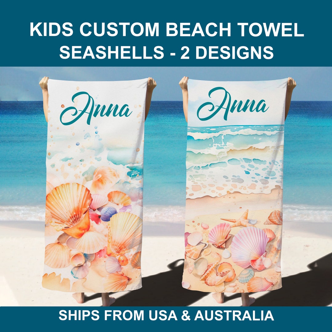 PERSONALIZED BEACH TOWEL Seashells Beach Towel Custom Towel Kids Sea ...