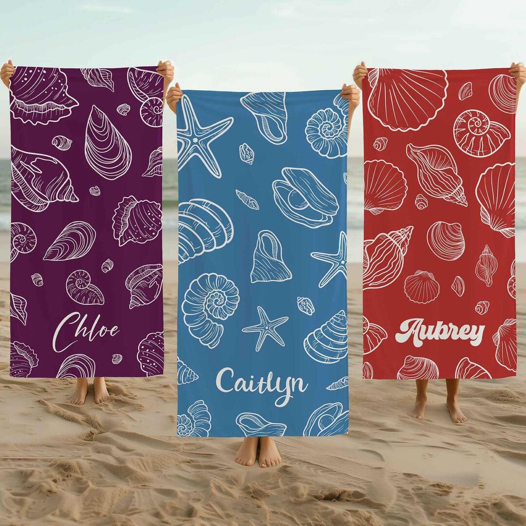 Seashell Custom Beach Towel, Personalized Seashell Bath Towel, Summer ...