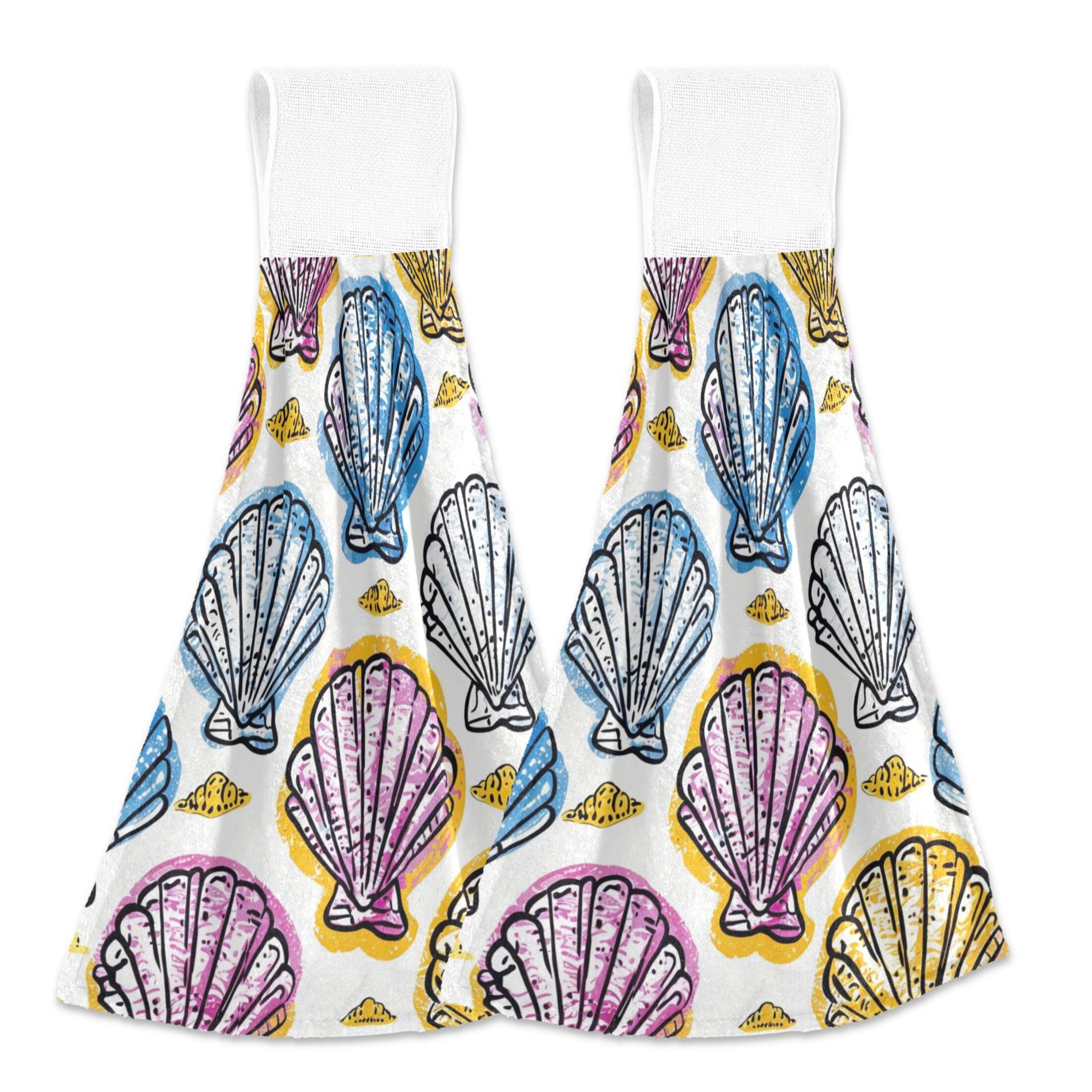2 Pcs Graphic Seashells Kitchen Hand Towels with Hanging Loops ...