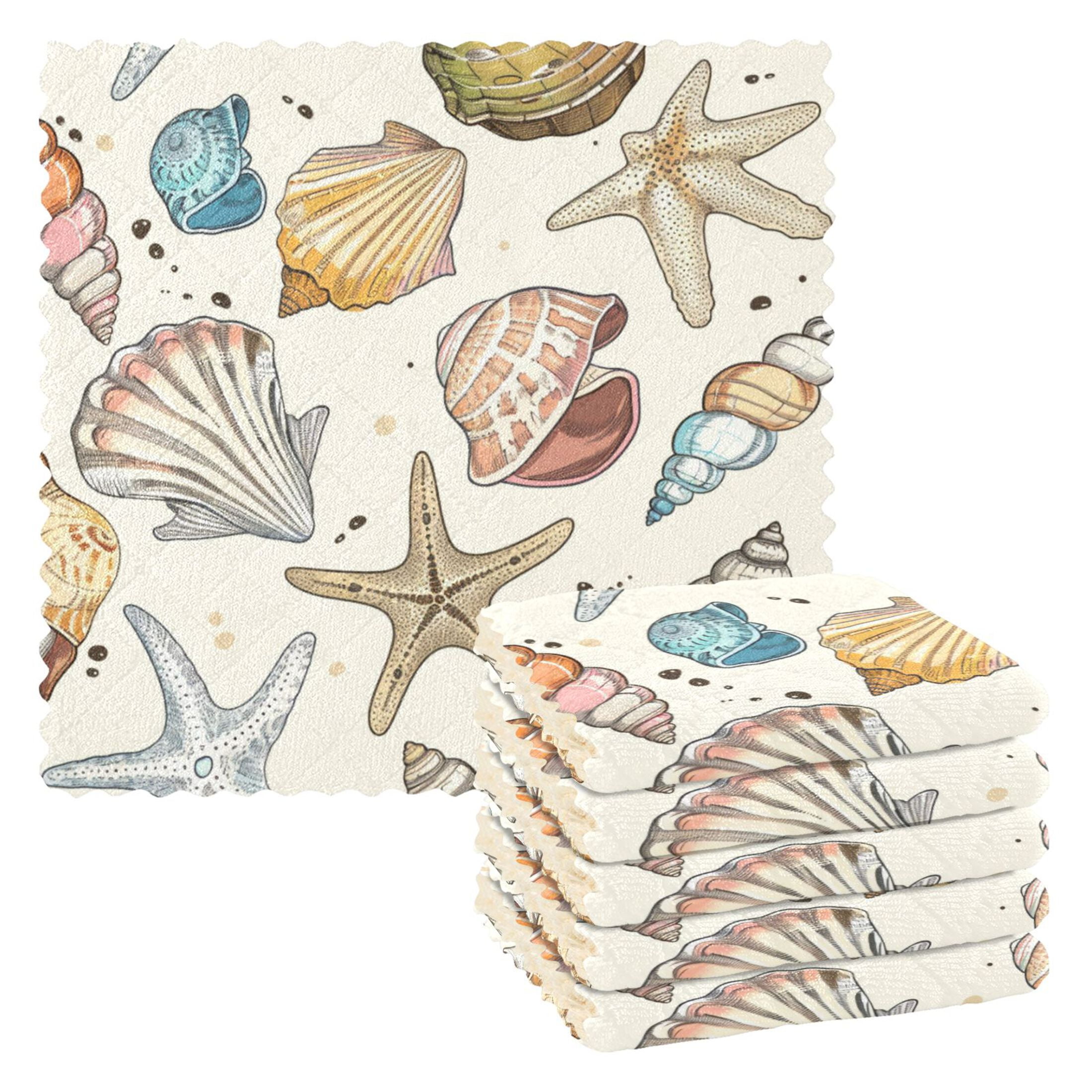 Ryvnso Hand Drawn Seashells Beach Stars Kitchen Towels Dish Clothes for ...