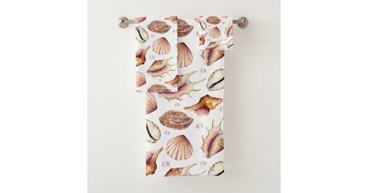 Watercolor Seashells Bath Towel Set | Zazzle