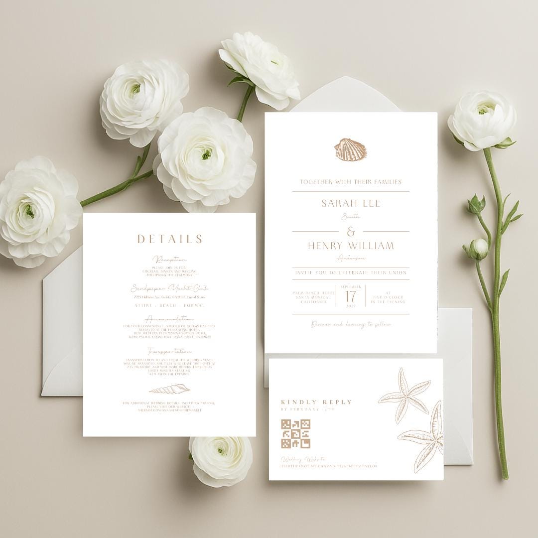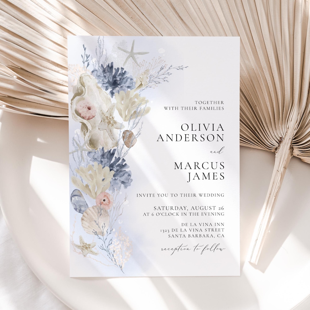 Shells Wedding Invitation Template - Etsy