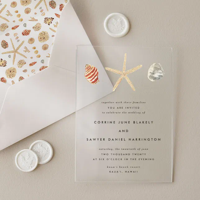 Modern Watercolor Seashells Wedding Acrylic Invitations | Zazzle