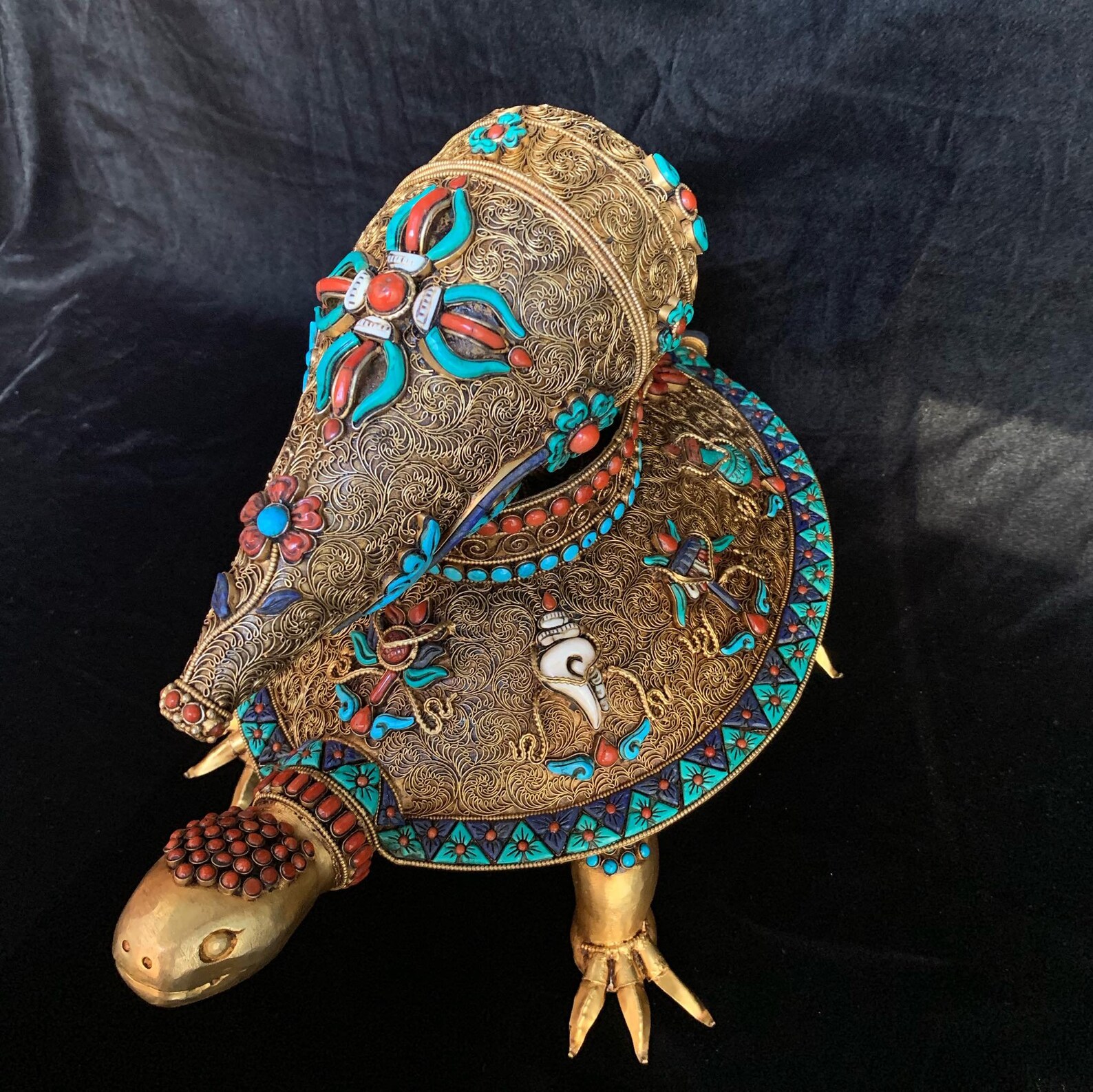 Masterpiece Nepal Buddhist Zambala-topped good Luck Turtle & Conch ...