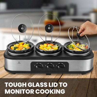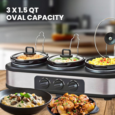 Schallen Triple 3 x 1L Stainless Steel Stew and Stir Slow Cooker Cooki ...