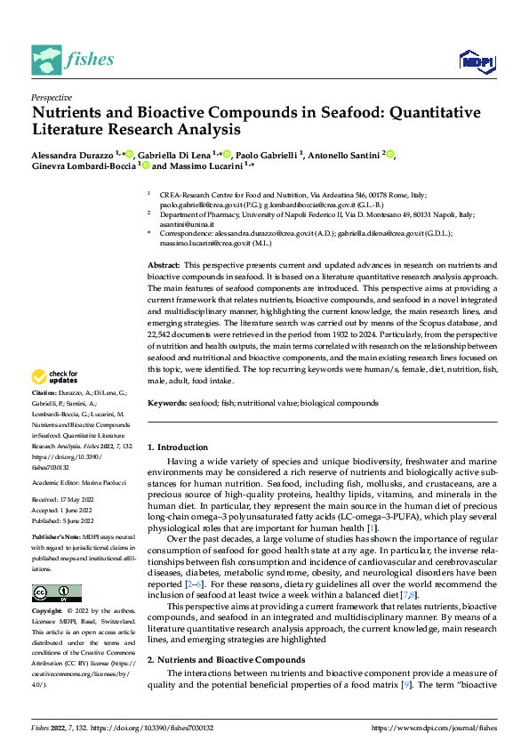 Nutrients and Bioactive Compounds in Seafood: Quantitative Literature ...