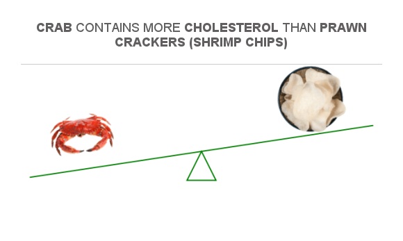 Compare Cholesterol in Crab to Cholesterol in Prawn crackers (Shrimp chips)