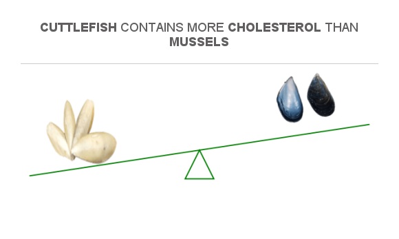 Compare Cholesterol in Cuttlefish to Cholesterol in Mussels