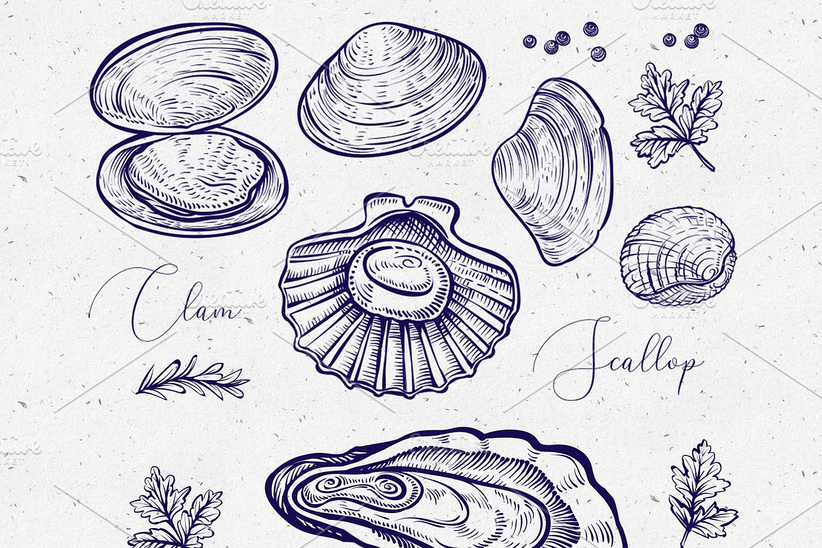 Vector sketch of Shellfish & Oysters | Graphic Objects ~ Creative Market