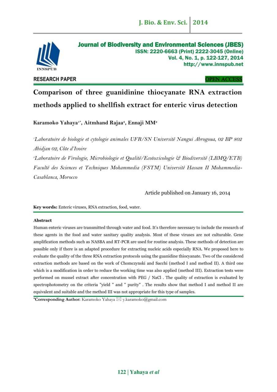Comparison of three guanidinine thiocyanate RNA extraction methods ...