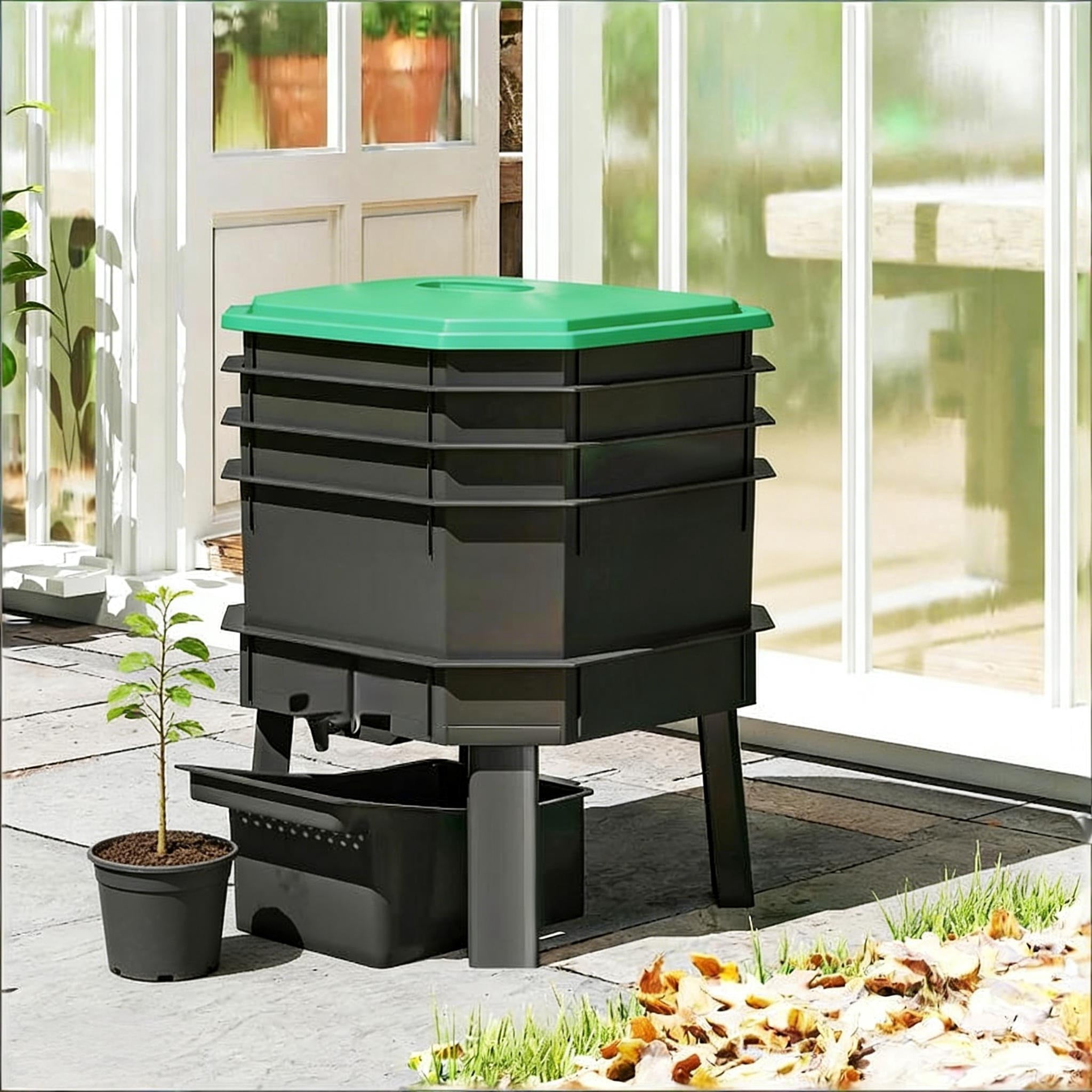 4-Tray Worm Composter Bin, Vertical Worm Composting System for Kitchen ...