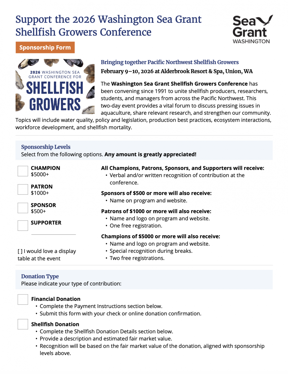 2026 Conference for Shellfish Growers – Washington Sea Grant