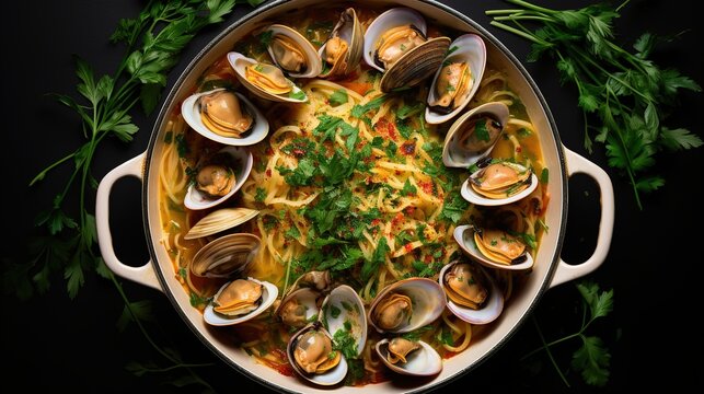 Premium AI Image | spaghetti alle vongole with tomato in seafood jus ...