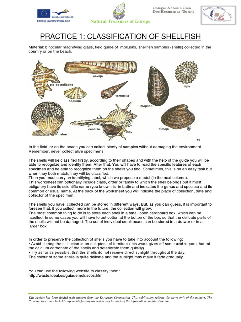 Practice 2 Classification of Shellfish | PDF