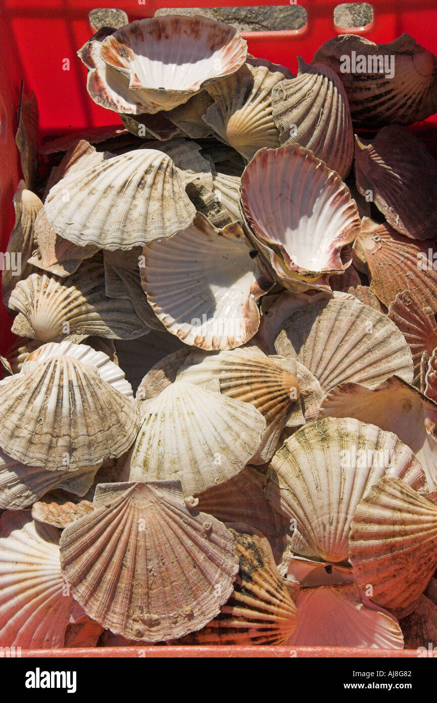 Basket of scallop shells, Looe, Cornwall, UK Stock Photo - Alamy