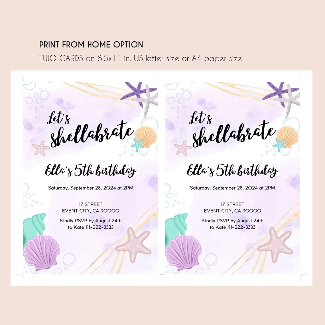 Sea Shell Invitation, Shellebrate Birthday Invite, Digital Download ...