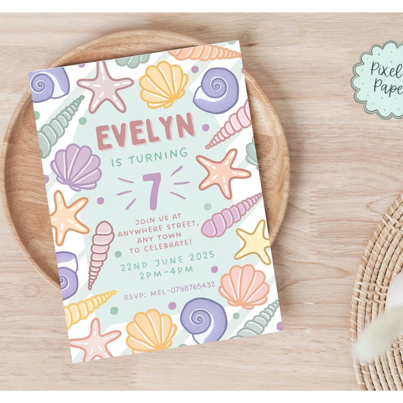 Shells Theme Birthday Editable Template Invitation - Etsy