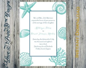 Seashell Wedding Invitation, Birthday Invitation, Party Invitation ...