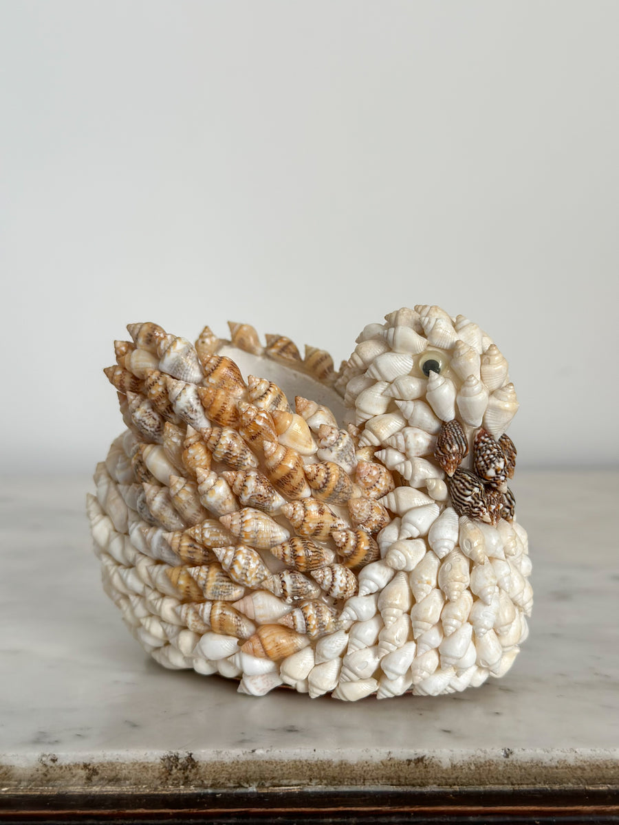Vintage folk art sea-shell (‘shellwork’) swan trinket dish or ornament ...