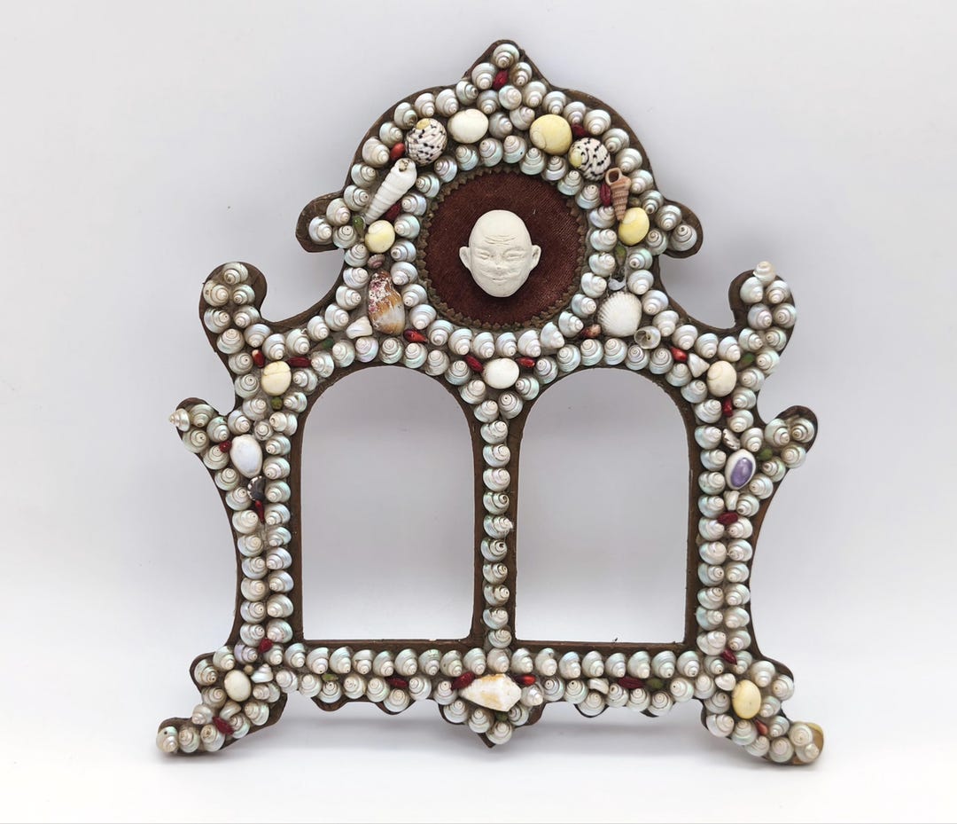 Detail shellwork window | Shell art, Shell house, Arts and crafts