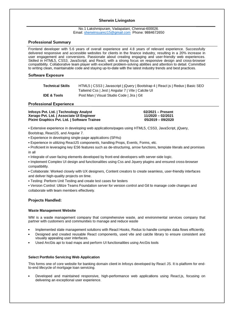 Frontend Developer Resume - Sherwin Livingston | PDF | J Query | Java ...