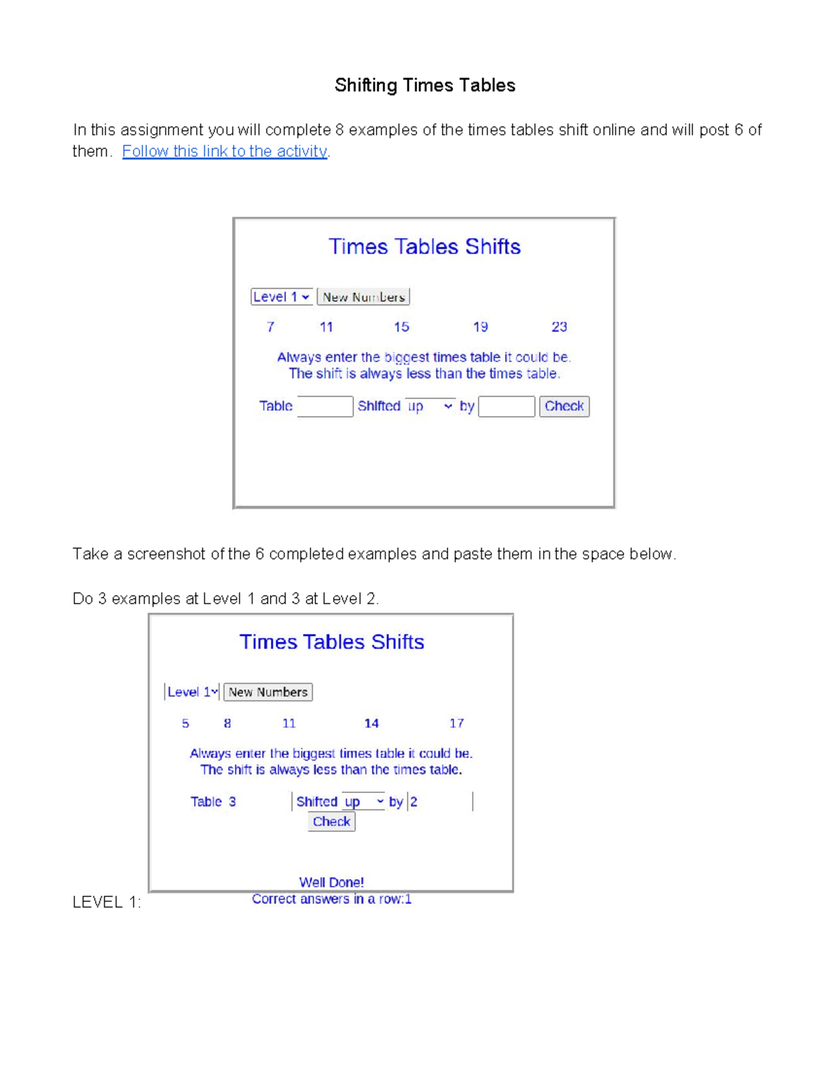 Shifting Times Tables - Follow this link to the activity . Take a ...
