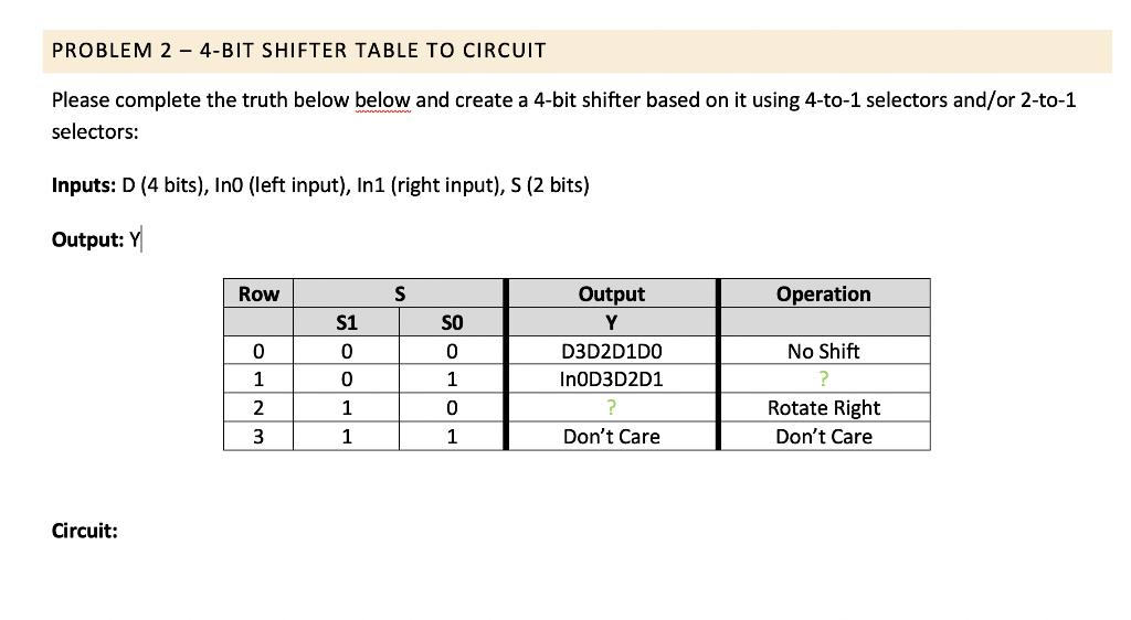 Solved PROBLEM 2 - 4-BIT SHIFTER TABLE TO CIRCUIT Please | Chegg.com