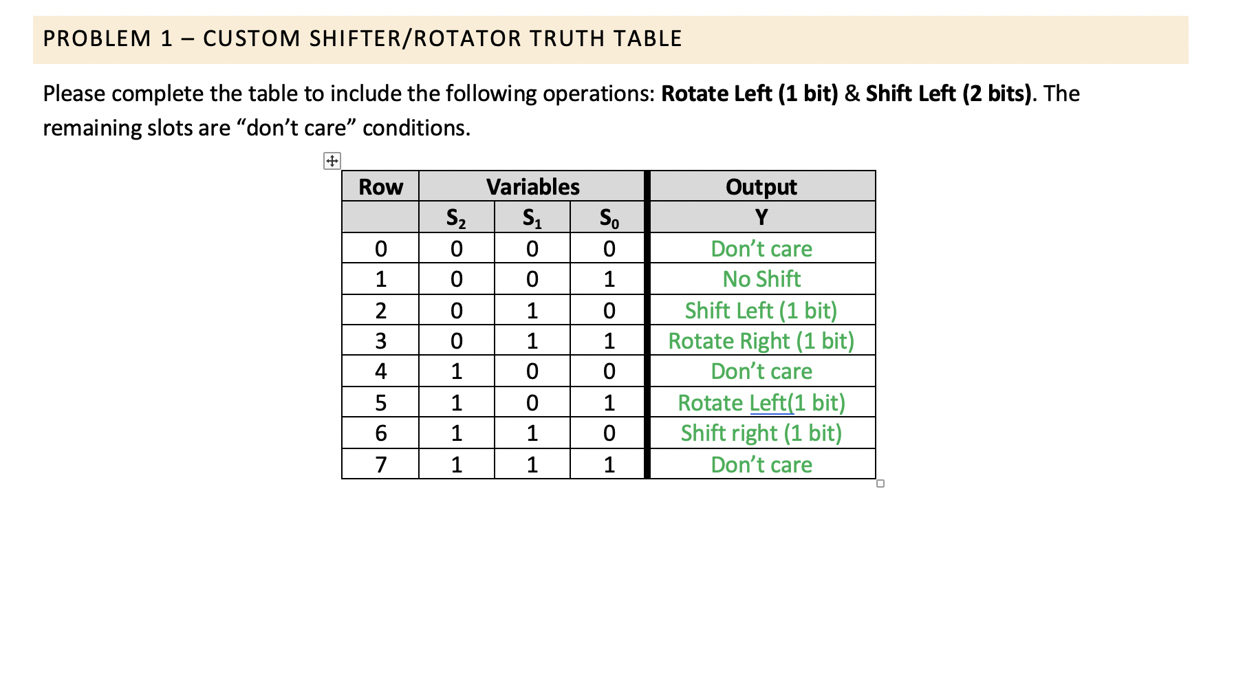 Solved PROBLEM 1 – CUSTOM SHIFTER/ROTATOR TRUTH TABLE Please | Chegg.com