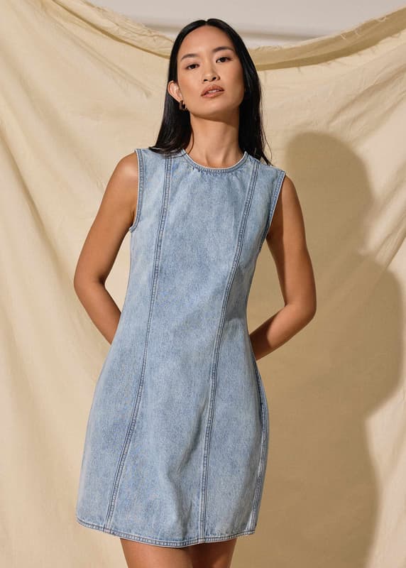 Denim Round Neck Shift Mini Dress | Love, Bonito SG