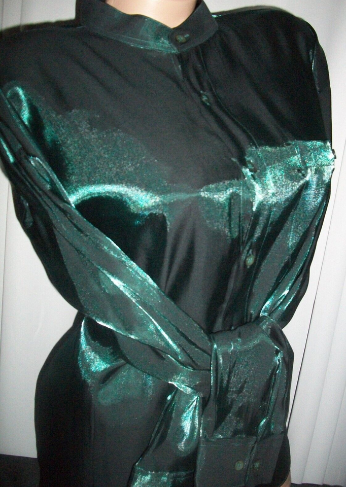 Vtg Green Shiny Satin Rayon Lame Button Shirt Top L | eBay
