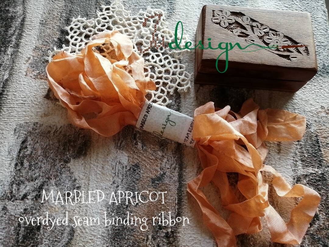 Hand Overdyed Shiny Rayon Seam Binding Ribbon - MARBLED APRICOT - 1/2 ...