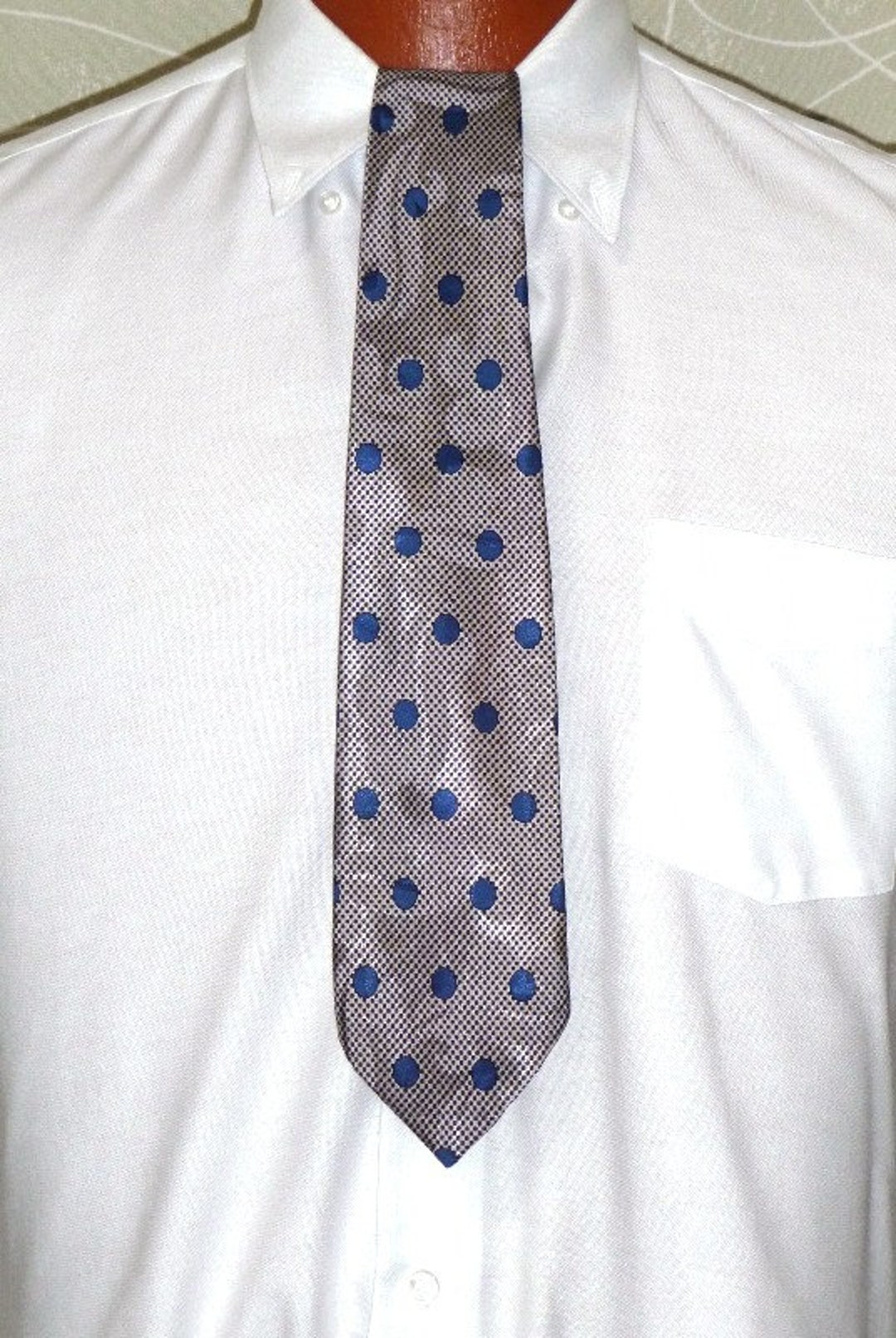 1950's Shiny Rayon Tie in Gray With Dot Pattern in Navy and Blue ...