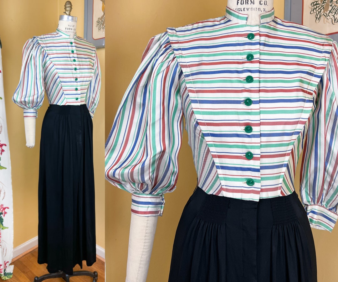 Vintage 1940s Dressing Gown // Shiny Striped Rayon + Black Rayon Jersey ...