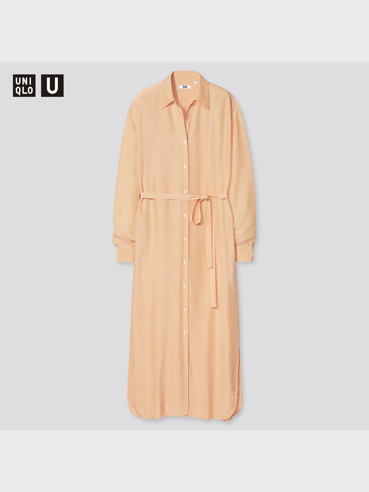 U Shiny Rayon Long-Sleeve Long Shirt Dress | UNIQLO US