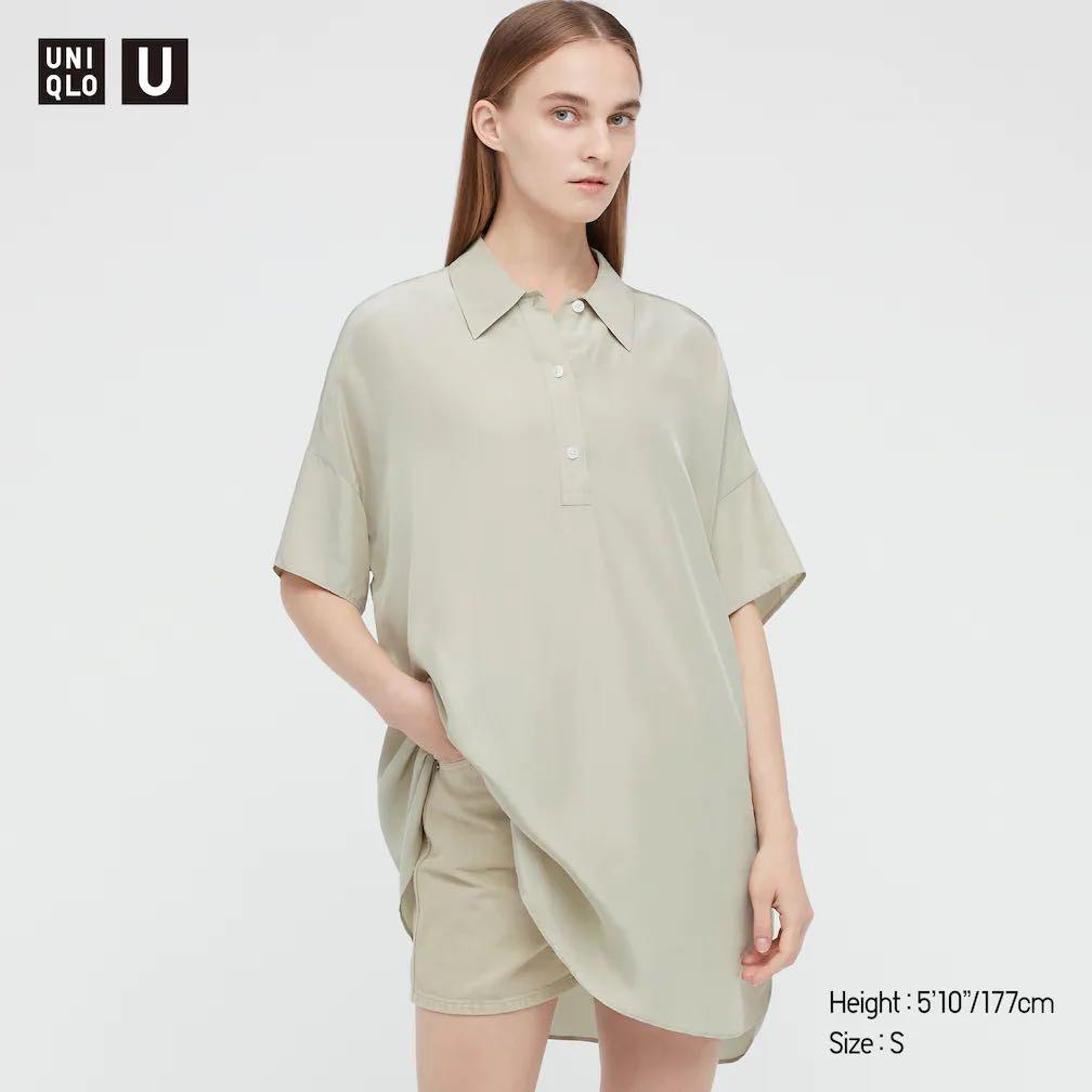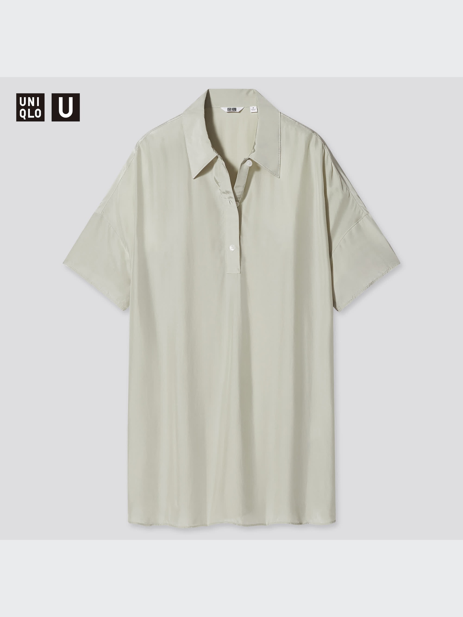 UNIQLO U shiny rayon polo tunic, Women's Fashion, Tops, Others Tops on ...