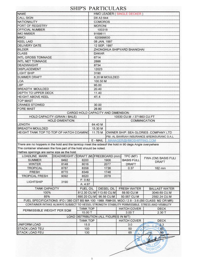 Ship's Particulars - MT Hong Hai 6 | PDF | Technology & Engineering