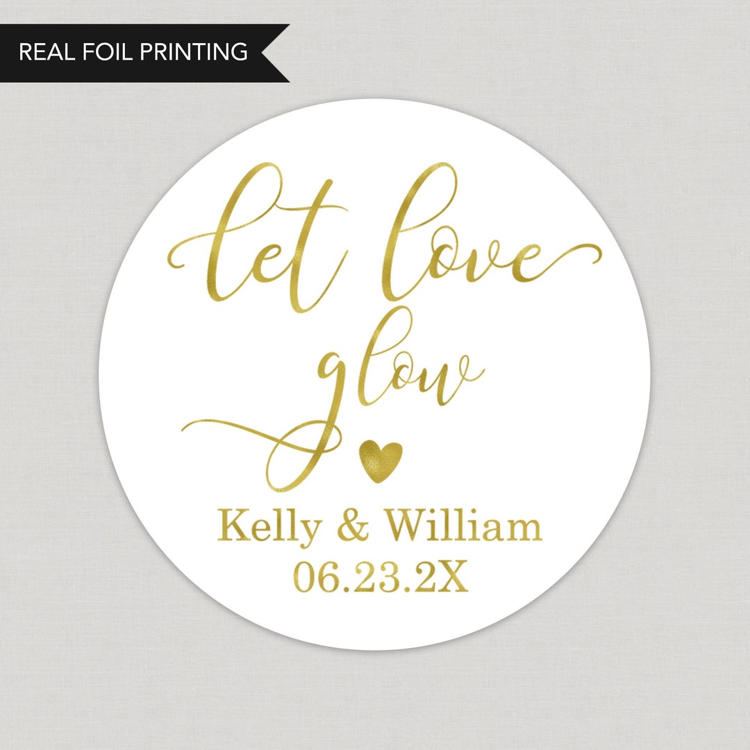Let Love Glow Foil Favor Stickers Personalized Foil Stickers Custom ...