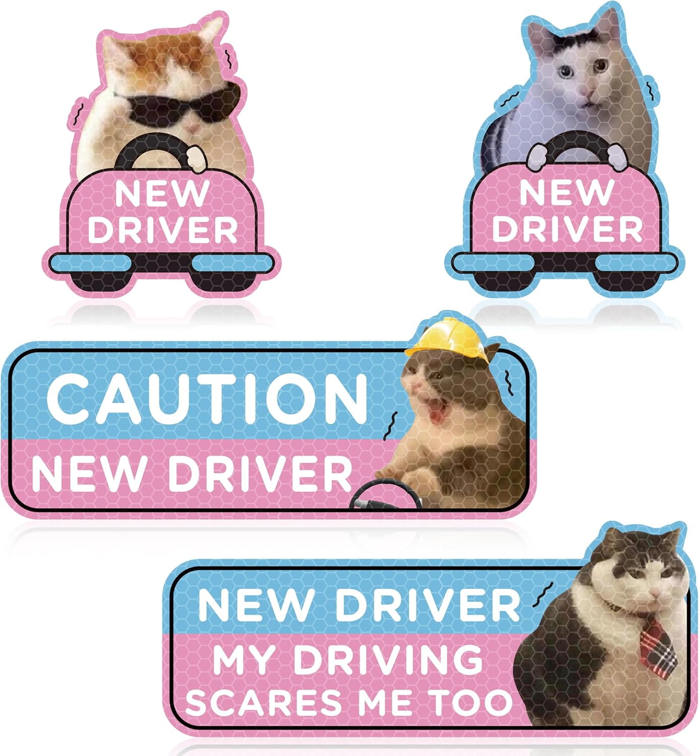 CNhoqc 4pcs Funny Cat New Driver Car Magnet, Cute Shivering Cat ...