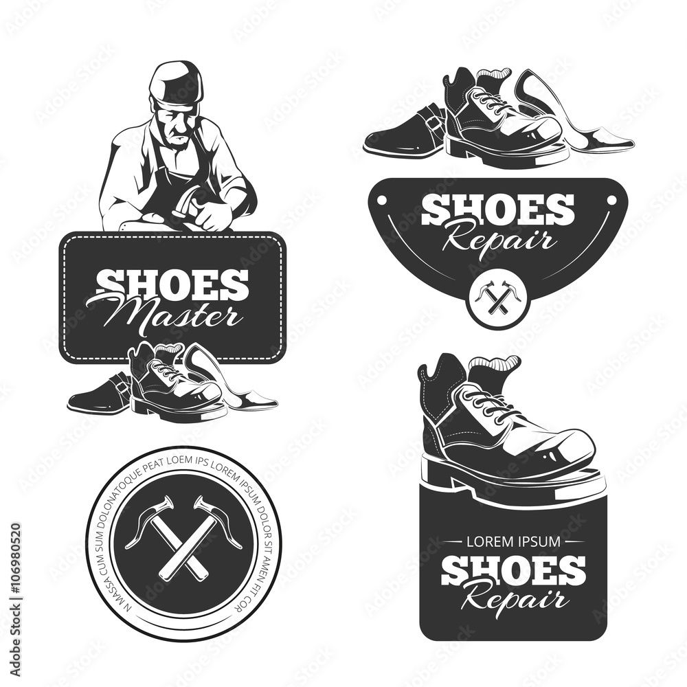 Set Of Shoe Repair Emblems Shoe Repair Tools Design Elements For Label ...