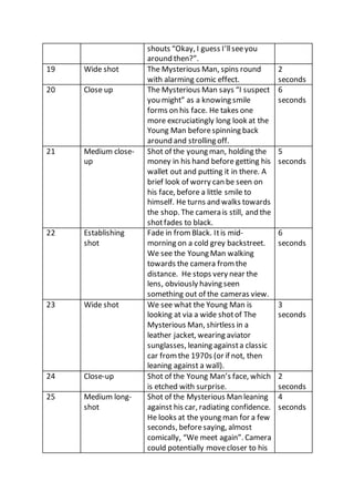 A2 Media Studies. Raquel Tome. Rooks Heath.: Planning: Shooting Script