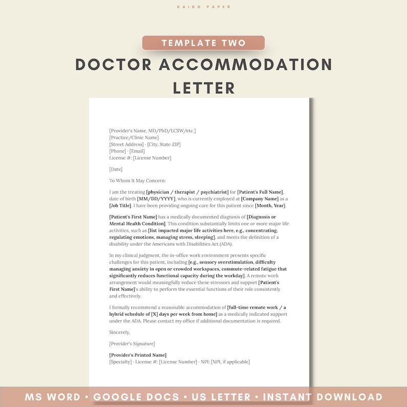 Work From Home Accommodation Letters | Mental Health Remote Work ...