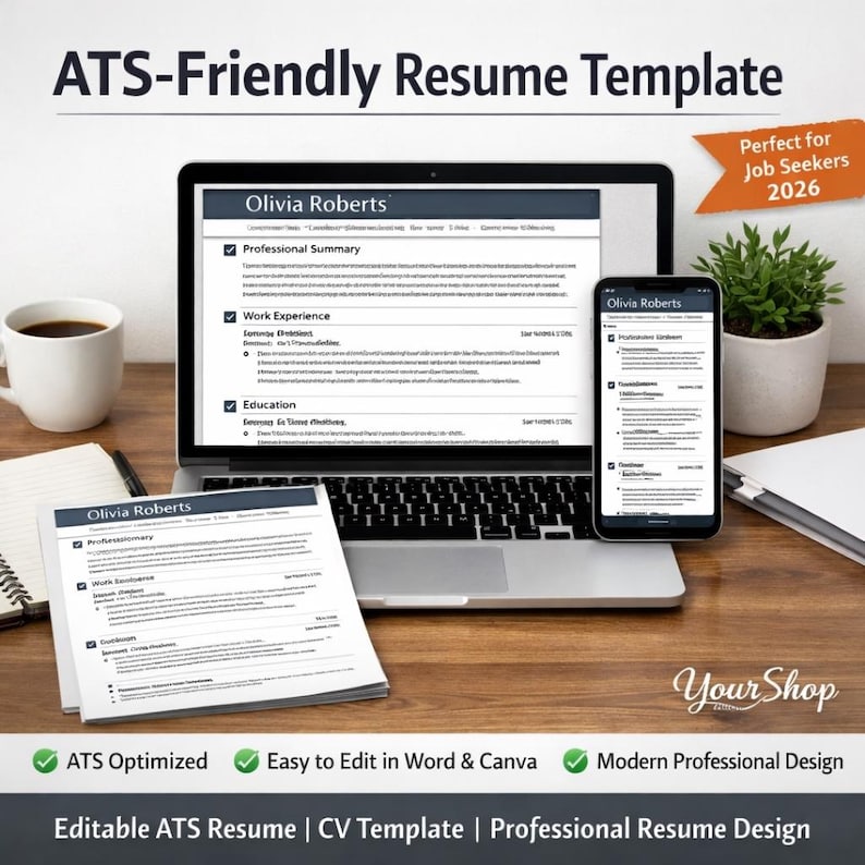 Simple ATS Friendly Resume Template Word, Pages, ATS Resume, CV Resume ...