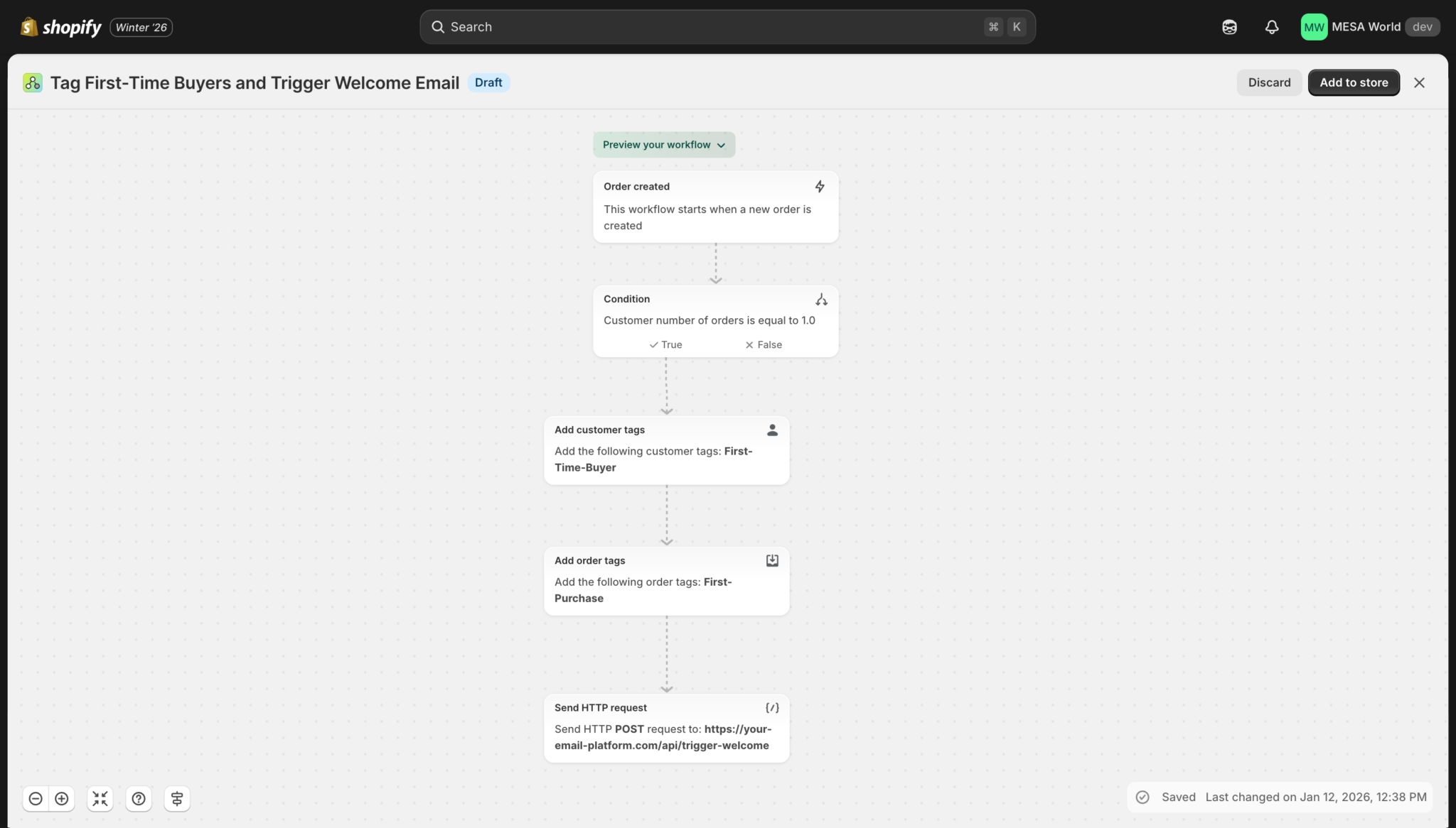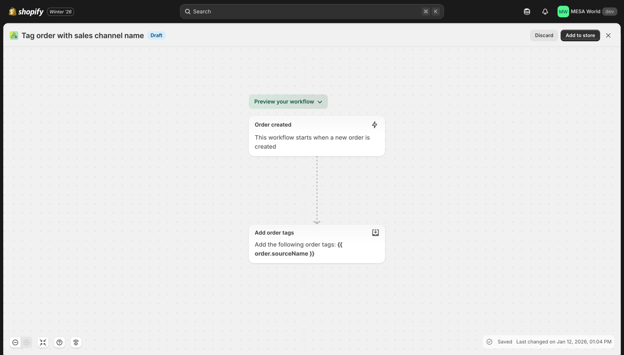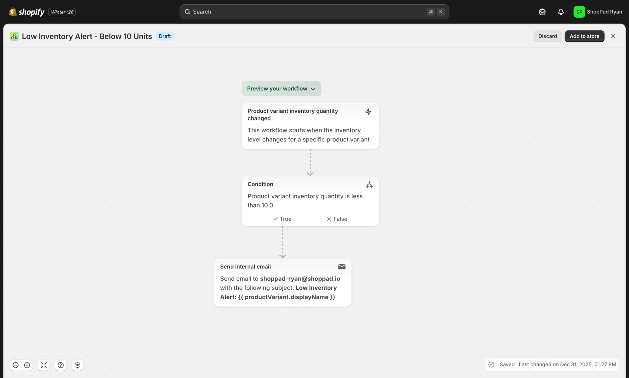 Shopify Help Center | Using the workflow editor in Shopify Flow