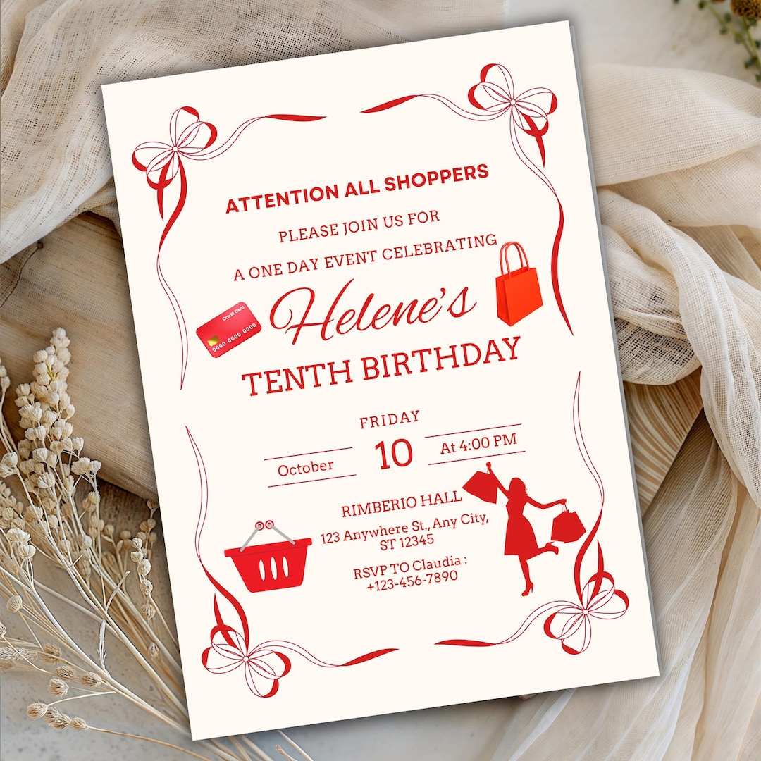 Red Shopping Birthday Invitation | Fashion Party, Editable Template ...