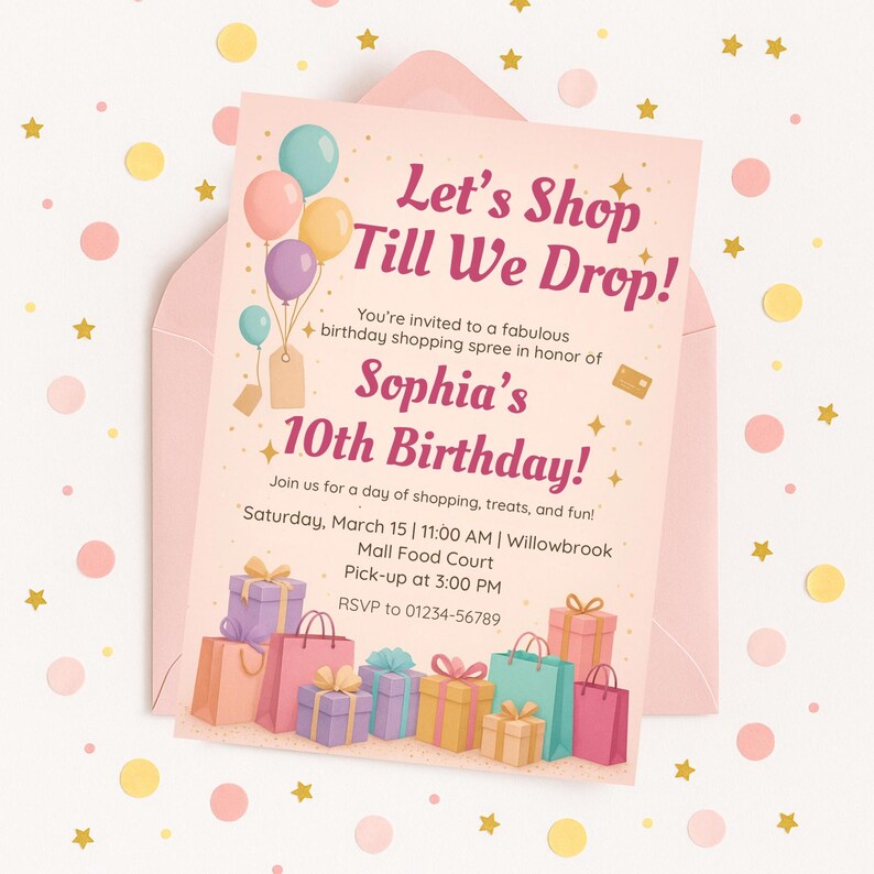 Customizable Shopping Spree Birthday Invitation Template for Girl, Shop ...