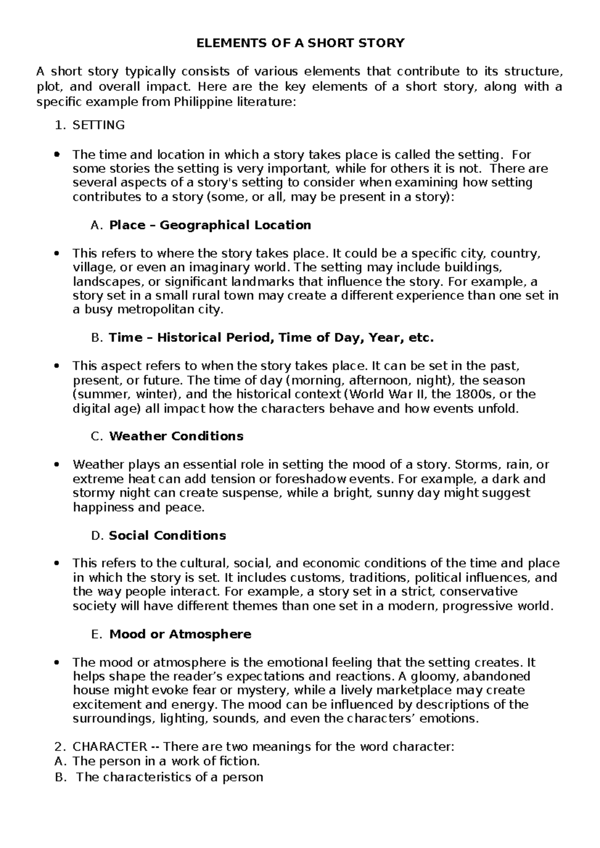 Elements of a Short Story: Key Components and Examples (ENG101) - Studocu