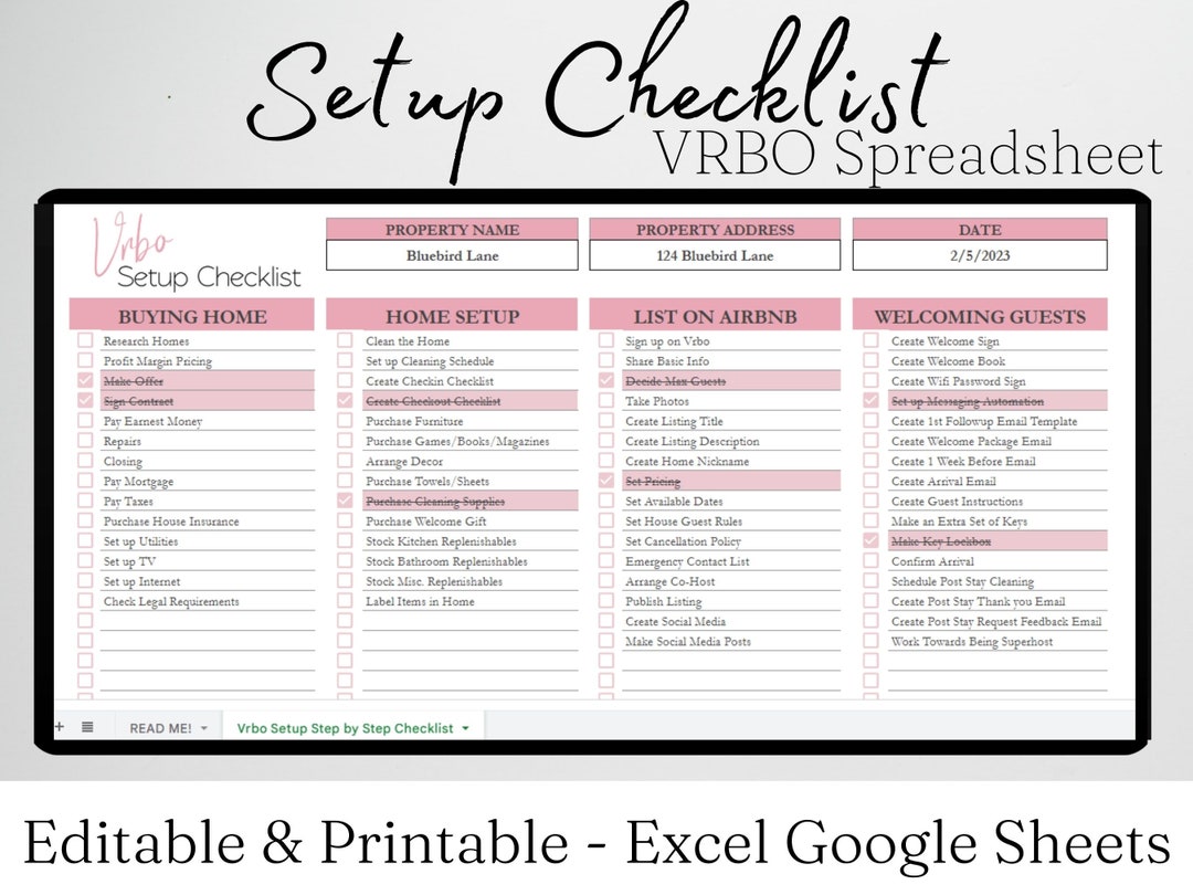 Set up Checklist Template, Setup Guide for Short Term Rentals, Rental ...